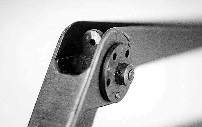 M16A1的觇孔,大觇孔用于0-300米内的近距离目标、运动目标及夜间条件下的射击,小觇孔用于300-460米距离目标的精确射击,翻起小觇孔时会看到“L”字的标记。