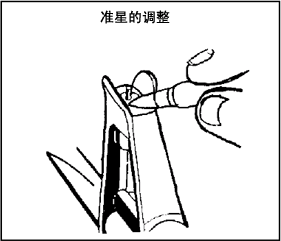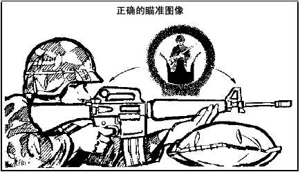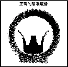 保持觇孔、准星柱的正确位置——通过觇孔看到柱形准星,使准星顶端位于觇孔的正中央,并调整视距的焦点,保持准星柱的清晰图像