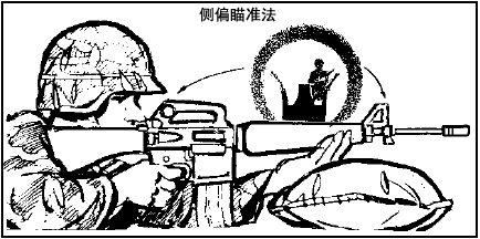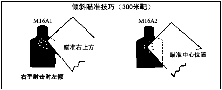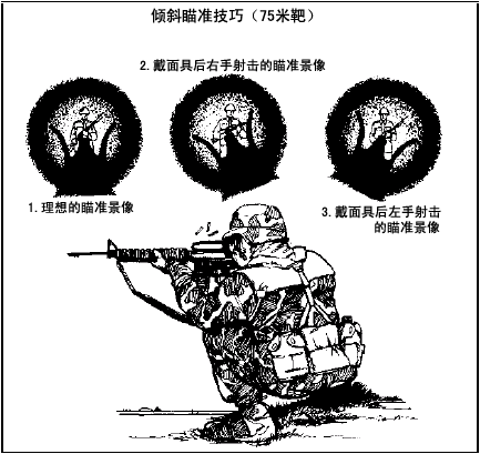 戴防毒面具时不得不倾侧步枪,瞄准时需要注意弹道与瞄准基线的重合。