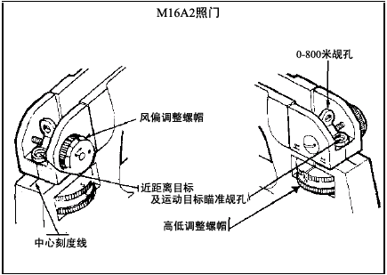 比起M16A1,M16A2的表演尺增加了一个调节照门高低的螺帽,可以调整归零值至800米。