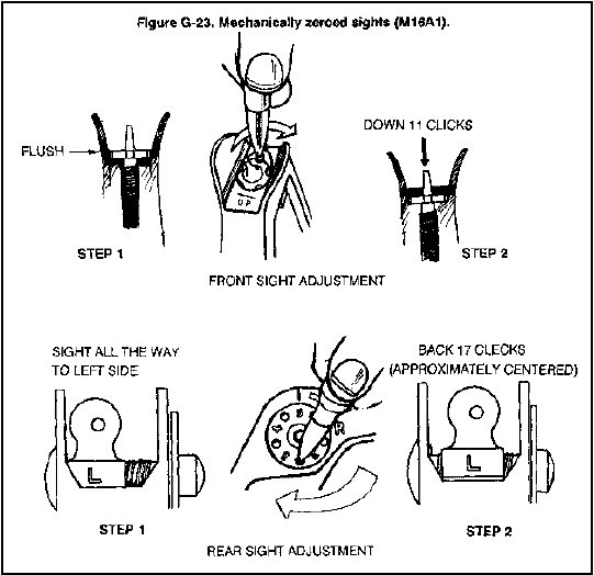 每个士兵都应该学会如何给瞄准具归零,根据实际射程调整瞄准具。大多数情况下的归零位置为25米,因为通常归零很少超出250米。