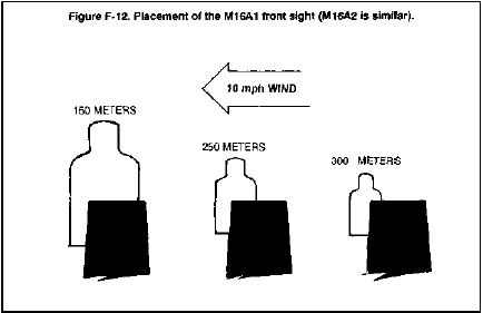 瞄准射击的时候,必须考虑风向和风速的因素,下图即为右侧横风、风速10英里/小时条件下的瞄准点。