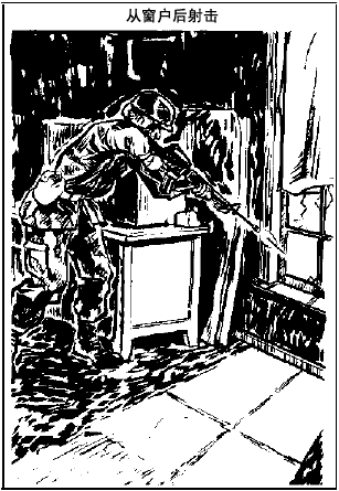 FM23-9的图例:在窗户后面射击时不要离窗子太近,应该让身体留在阴影中,最好能借助一些物件作为步枪的依托。
