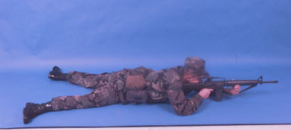 在卧姿射击时,可以利用身体吸收武器的后坐,这也是直枪托武器的优点。以下是两种MCRP 3-1A介绍的卧姿动作。