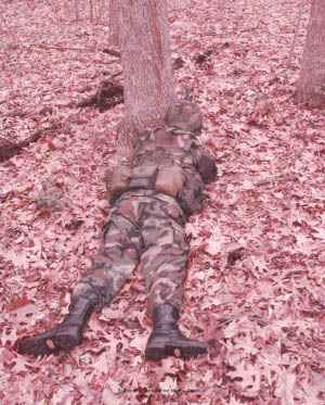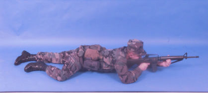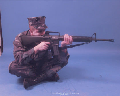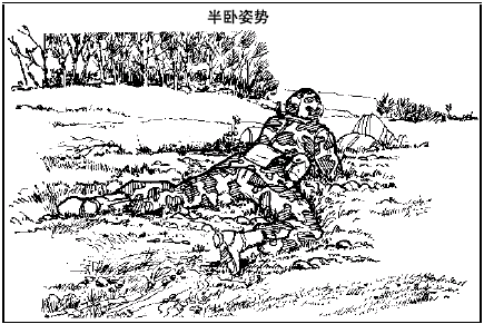 FM23-9中把“曲腿卧姿”称为“半卧姿”,而且提到这个姿势把身体稍为提高,可以获得更好的视野,以发现更多的目标。为提高射击精度,应利用肢体或步枪附件作为依托。