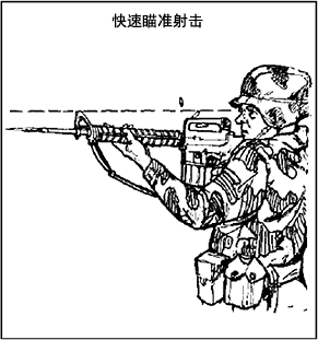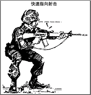 在交战中对于突然出现的目标时,往往来不及仔细瞄准射击,在枪托抵肩的情况下,可以使准星指向目标,并迅速开火压制目标。