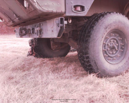 在MOUT战斗中,经常要利用车辆(非装甲车辆)作为掩体,须注意只有发动机及轮胎能抵挡枪弹,以下是MCRP 3-1A上的图例。