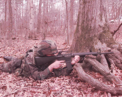 FM23-9要求,在训练的初期,教官应鼓励士兵学会利用稳固的物体为依托,以便提高射击精度和更容易地对付多个目标。