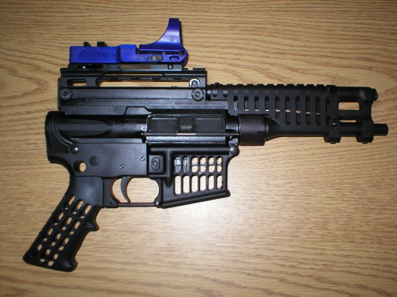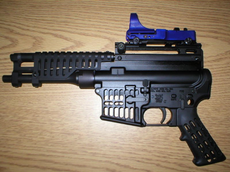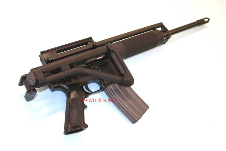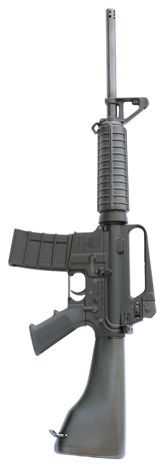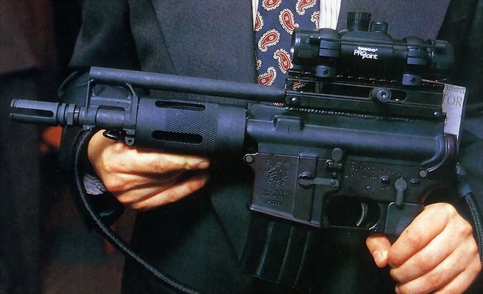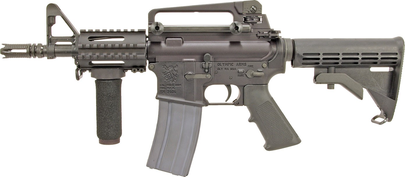 奥林匹克(OLYMPIC)军火公司创立于1956年,最初只是生产枪管,1982年开始为AR-15/M16加工零部件,到了20世纪90年代开始生产自己的AR-15变型枪,供应给执法部门或民间市场,其中在1993年推出的OA93系列及其后的OA96系列相当有特色,它仍然是采用原来的直接导气式原理,但把复进簧装置挪到枪管上方,而取消了M16传统的复进簧尾管,因此这个系列由于没有复进簧尾管而变得相当短,还可以使用折叠枪托。
