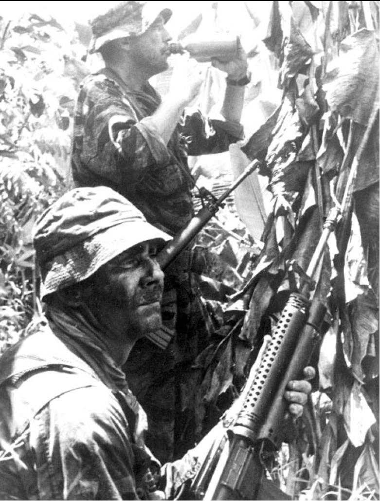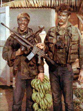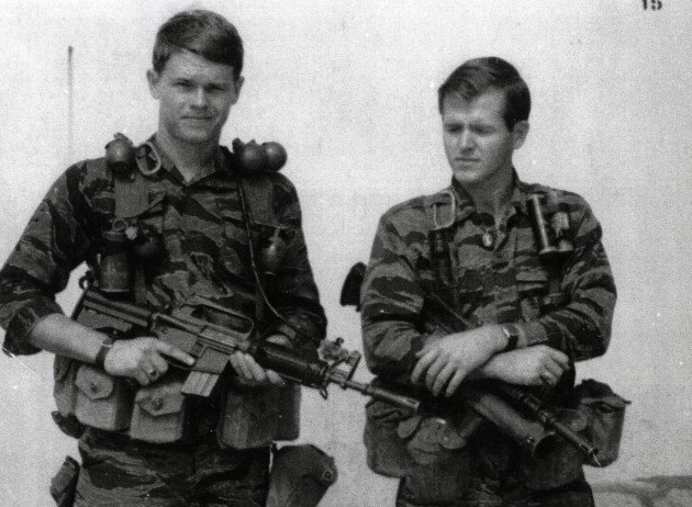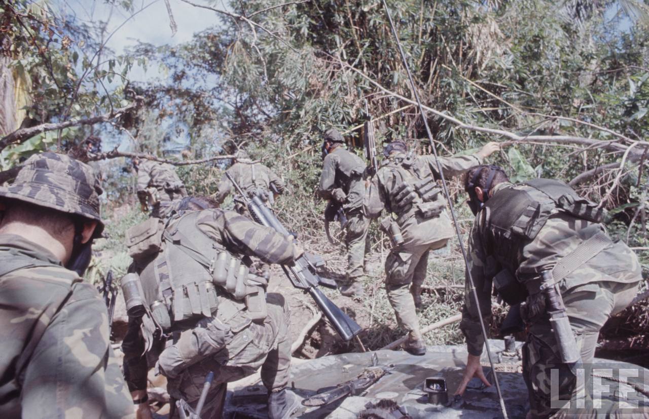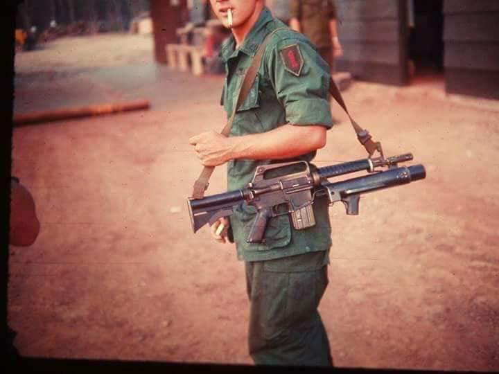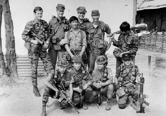 美国军事顾问指挥下的南越SOG侦察小分队,照片中左边的美军顾问的XM177E2下挂有XM148。