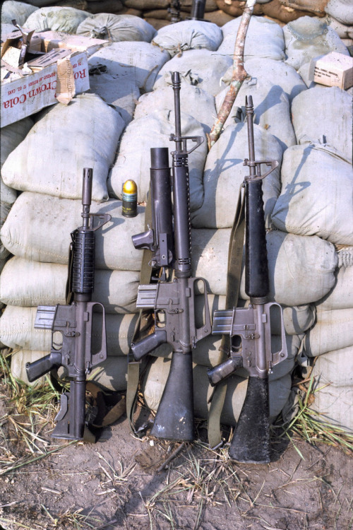 1967年,美国空军驻越南的基地保安单位的武器装备,包括有XM148
