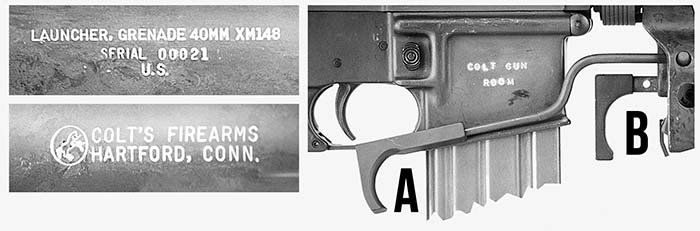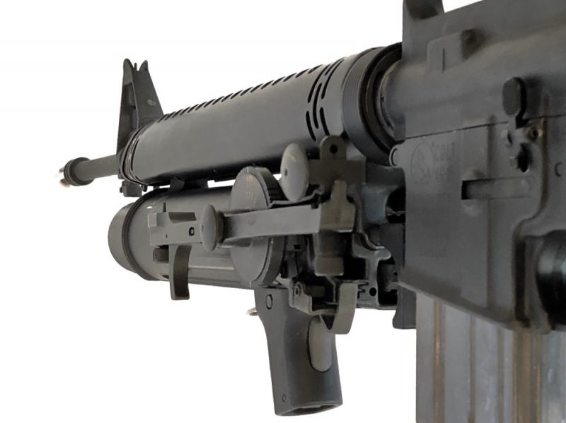 柯尔特公司为CAR-15枪族提供的面杀伤武器被命名为CGL-4 40mm榴弹发射器,由罗伯特·罗伊(Robert E. Roy)和卡尔·路易斯(Karl R. Lewis)设计,CGL是“柯尔特榴弹发射器”的缩写。1964年5月,柯尔特公司向军方高层展示他们的“CAR-15 5.56mm军用武器系统”时,除了冲锋枪型外其他CAR-15枪族的型号都没有让军方产生兴趣,然而同时展示的CGL-4榴弹发射器却引起了惠勒将军的极大兴趣。于是军方对春田兵工厂和福特发动机公司的榴弹发射器推动兴趣了。
