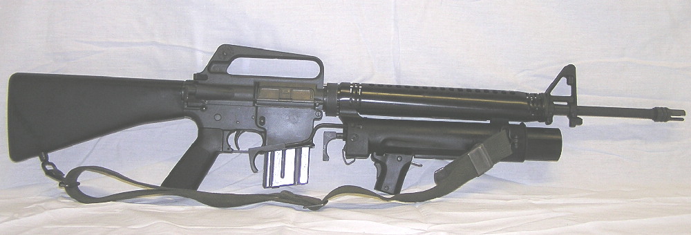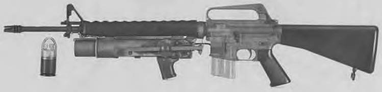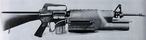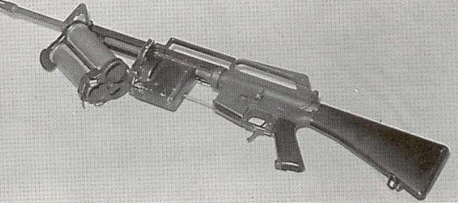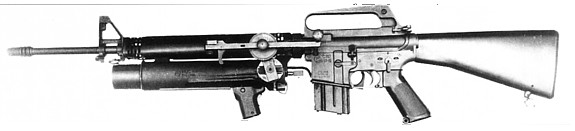 在越战初期,美军步兵班的面杀伤支援武器是发射40mm榴弹的M79榴弹发射器,虽然M79是一件可靠的武器,而且为步兵分队提供了有效的支援火力,但由于M79是单独使用的,使用的士兵需要同时携带一把M79和另一把枪进行自卫,因此美国陆军的军械部门决定设计一种可附加到点杀伤武器(即步枪)上的面杀伤武器(即榴弹发射器)。