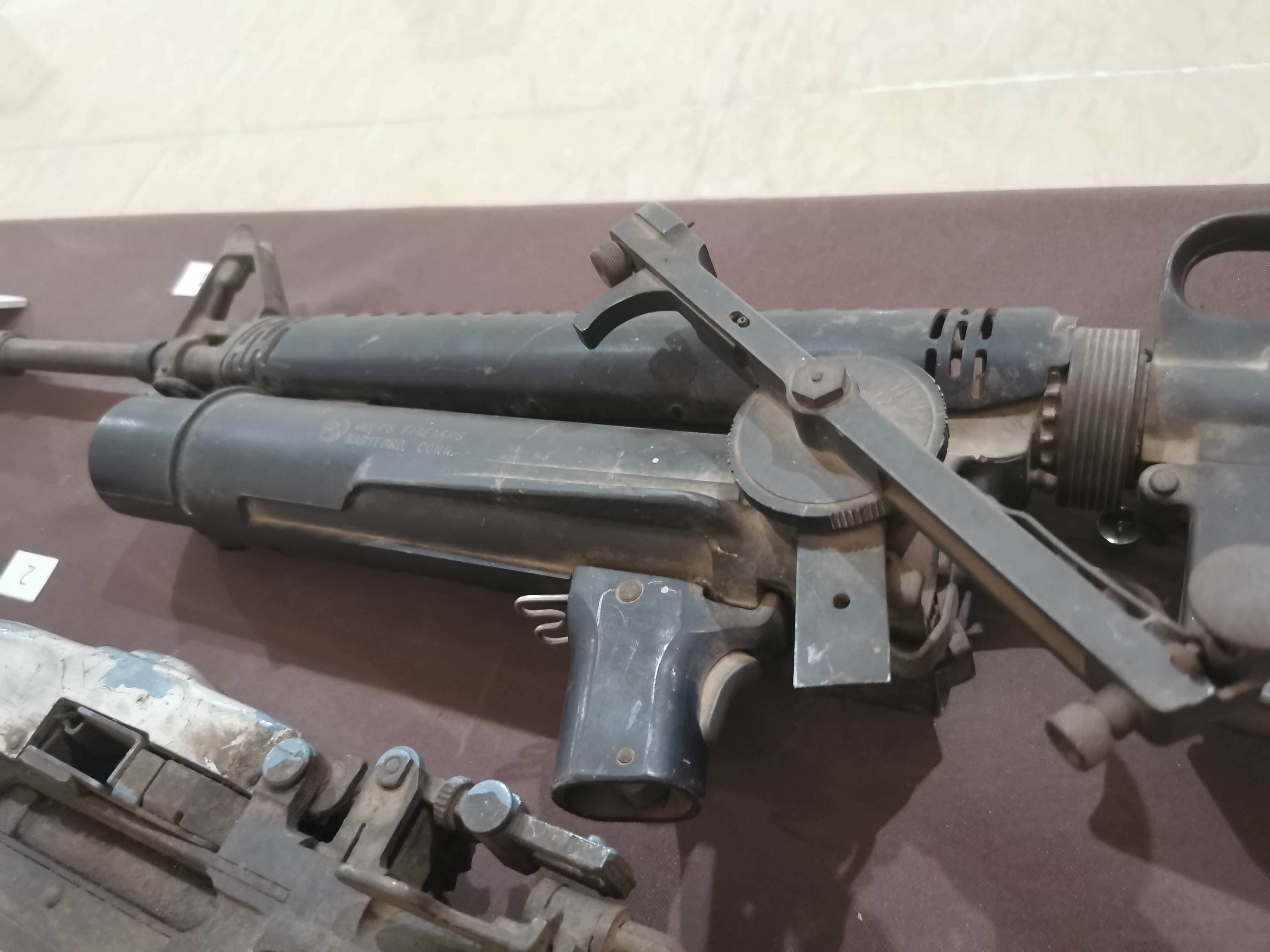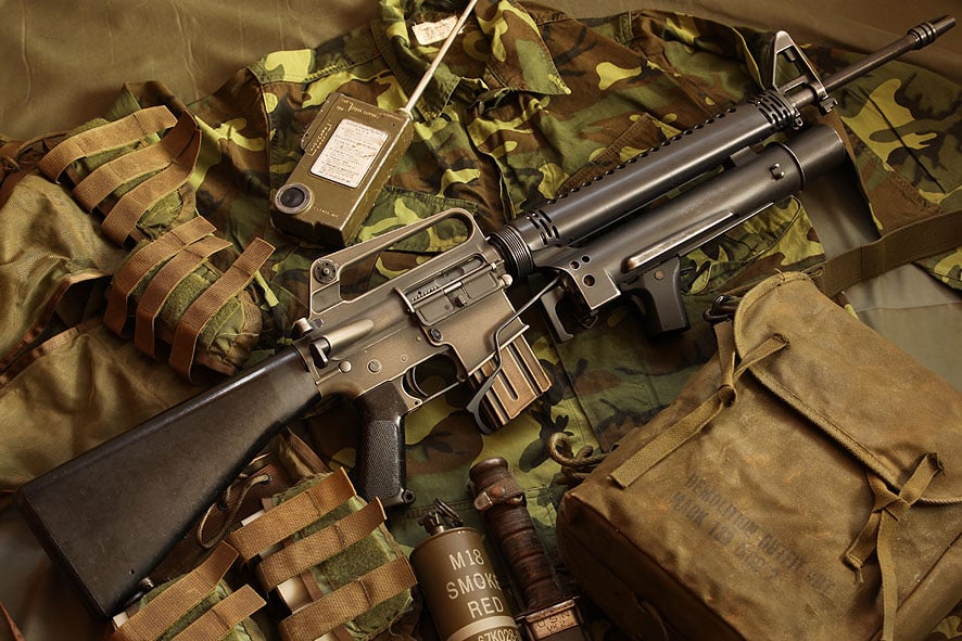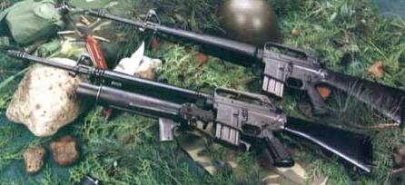 越战中各种使用XM148的武器平台,包括挂在M16A1、CAR-15卡宾枪、XM177E2和L1A1下面