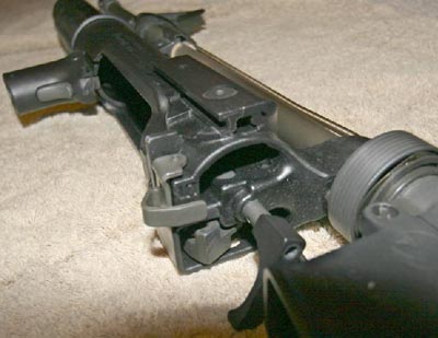 A是扳机,B是待发拉柄,装填后,要先拉B,才能扣A击发