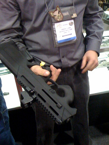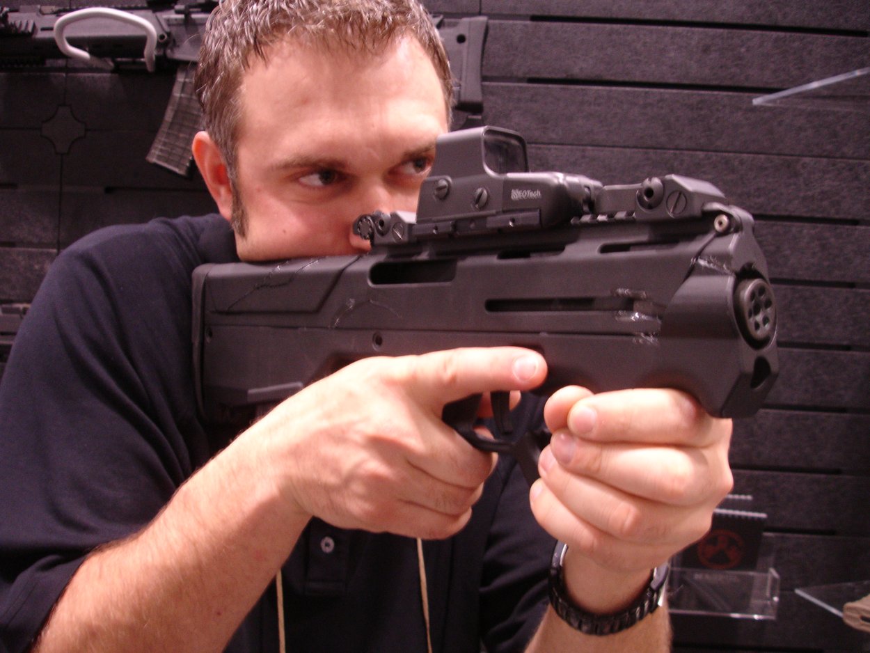 PDR是“个人防卫步枪”(Personal Defense Rifle)的缩写,实际上,这是一种发射5.56×45mm Nato步枪弹的无托结构的PDW(个人防卫武器)。不过,这只是一支概念演示的模型枪,而且在展出时连内部结构都没有设计好。