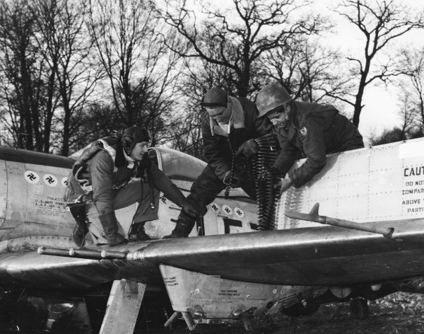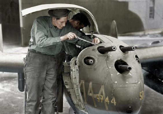 ![]() A-26B机头的M2机枪在装弹 |