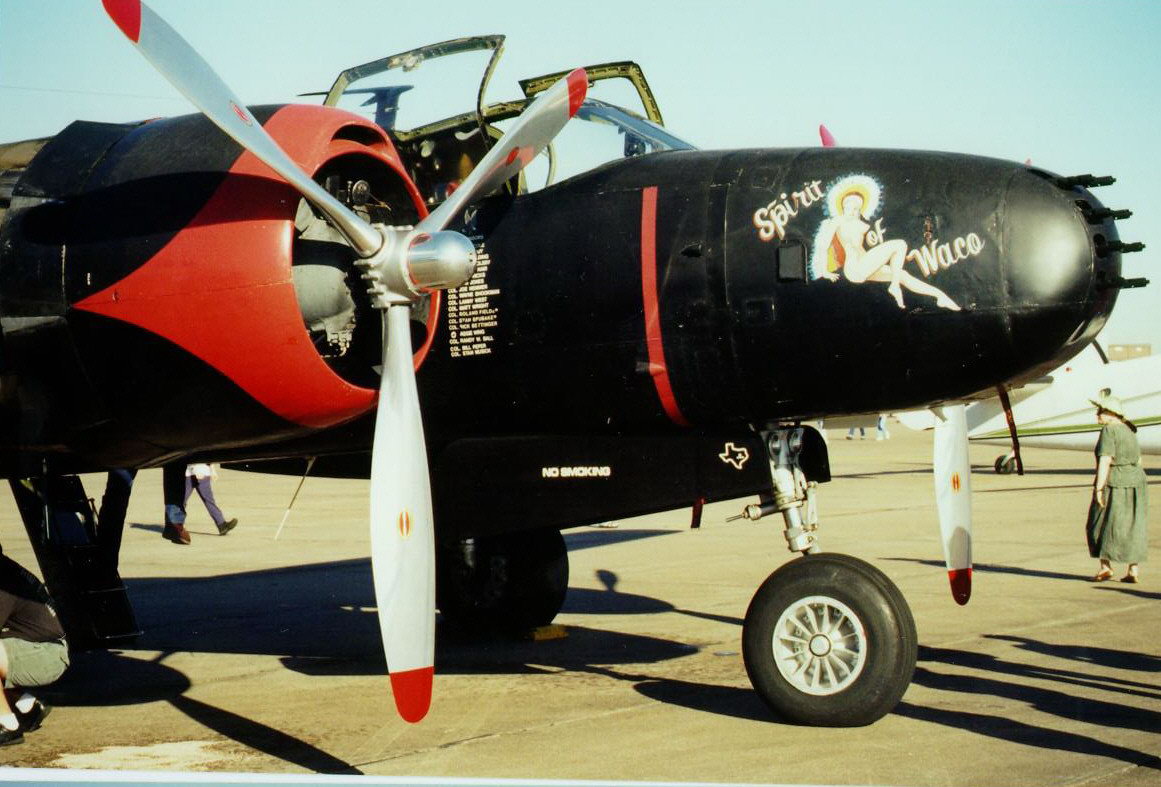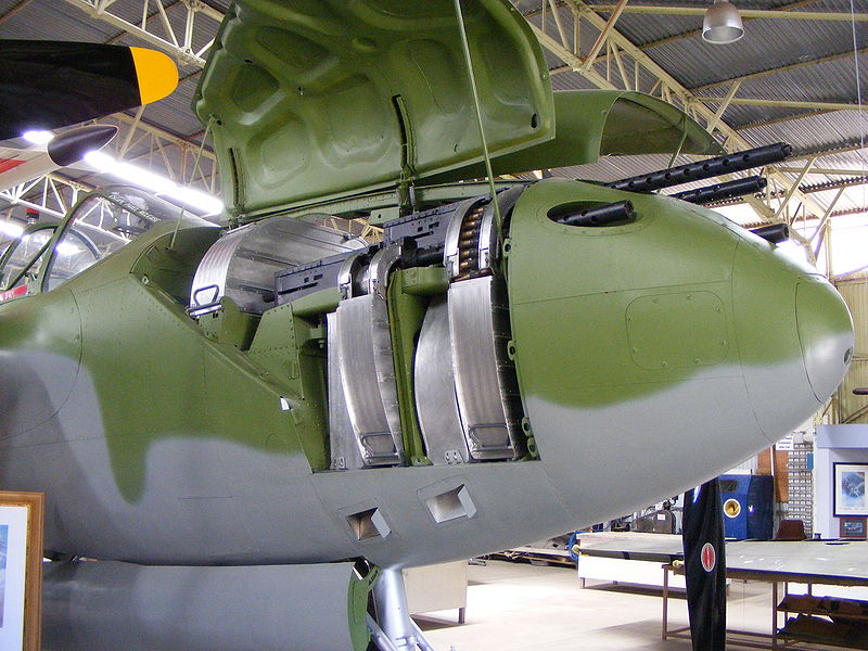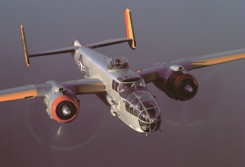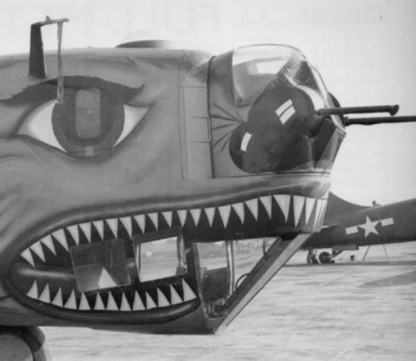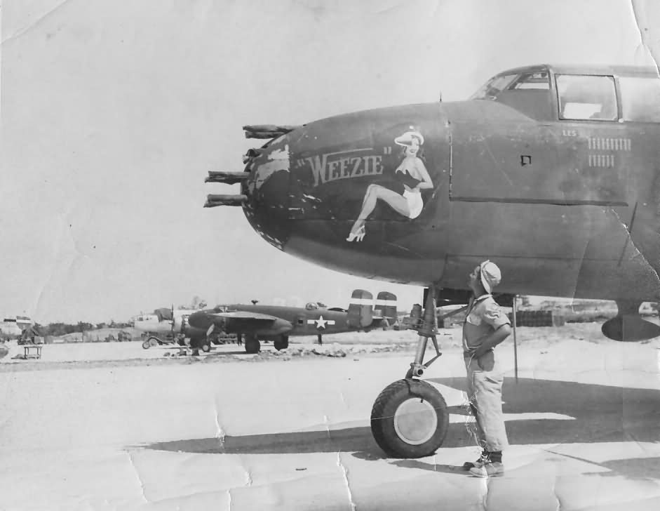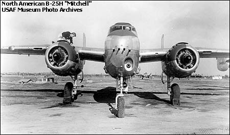 不同型号的B25,机鼻武器有安装在活动射架上的M2,也有固定安装航向射击的M2,甚至还有75mm M5加农炮(B25H)