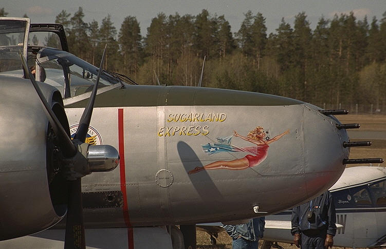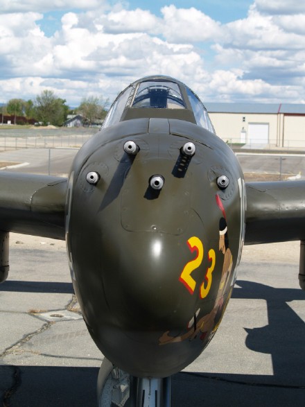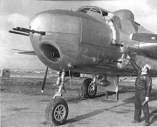 ![]() ![]() A-26A的机头共有8挺固定的M2机枪 |