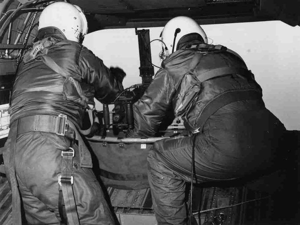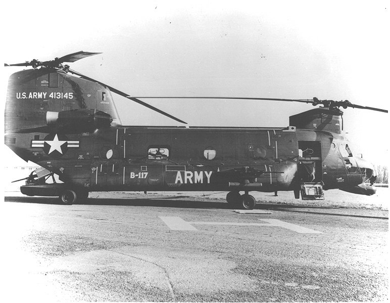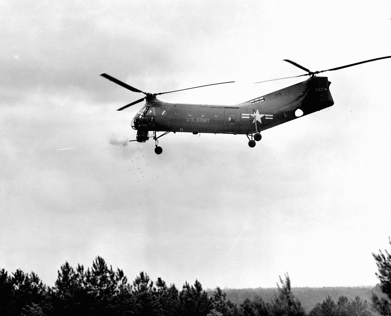 在美军早期对直升机携带武装进行实验的时候,在一架CH-21机腹安装了两挺AN/M2机枪