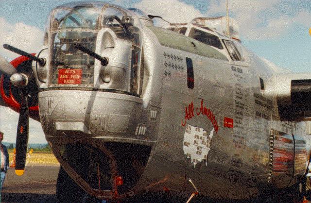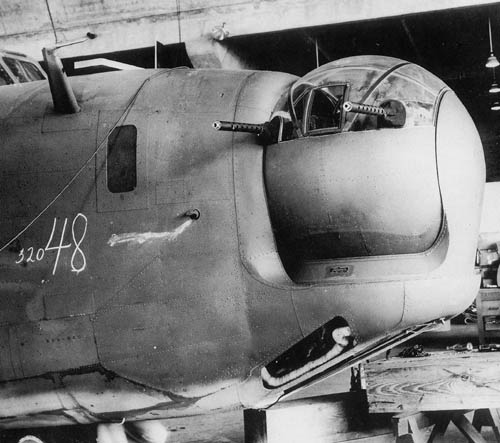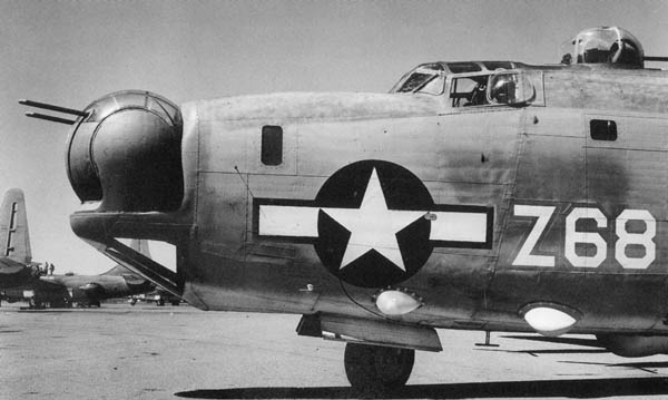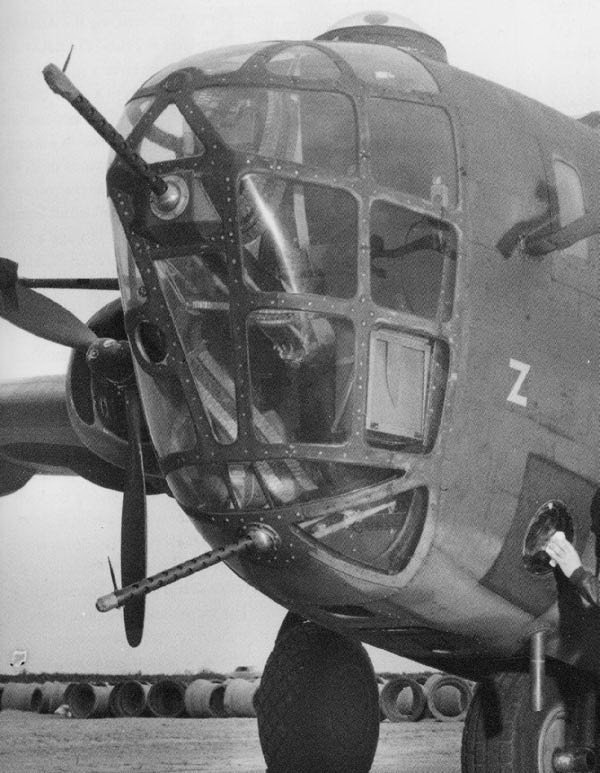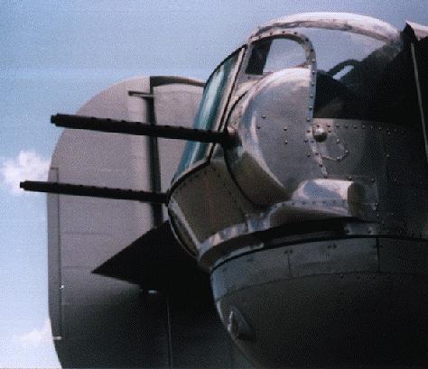 B24“解放者”早期的机鼻上有3挺不同方向的M2,后来改成和尾炮塔一样的双联机枪旋转炮塔