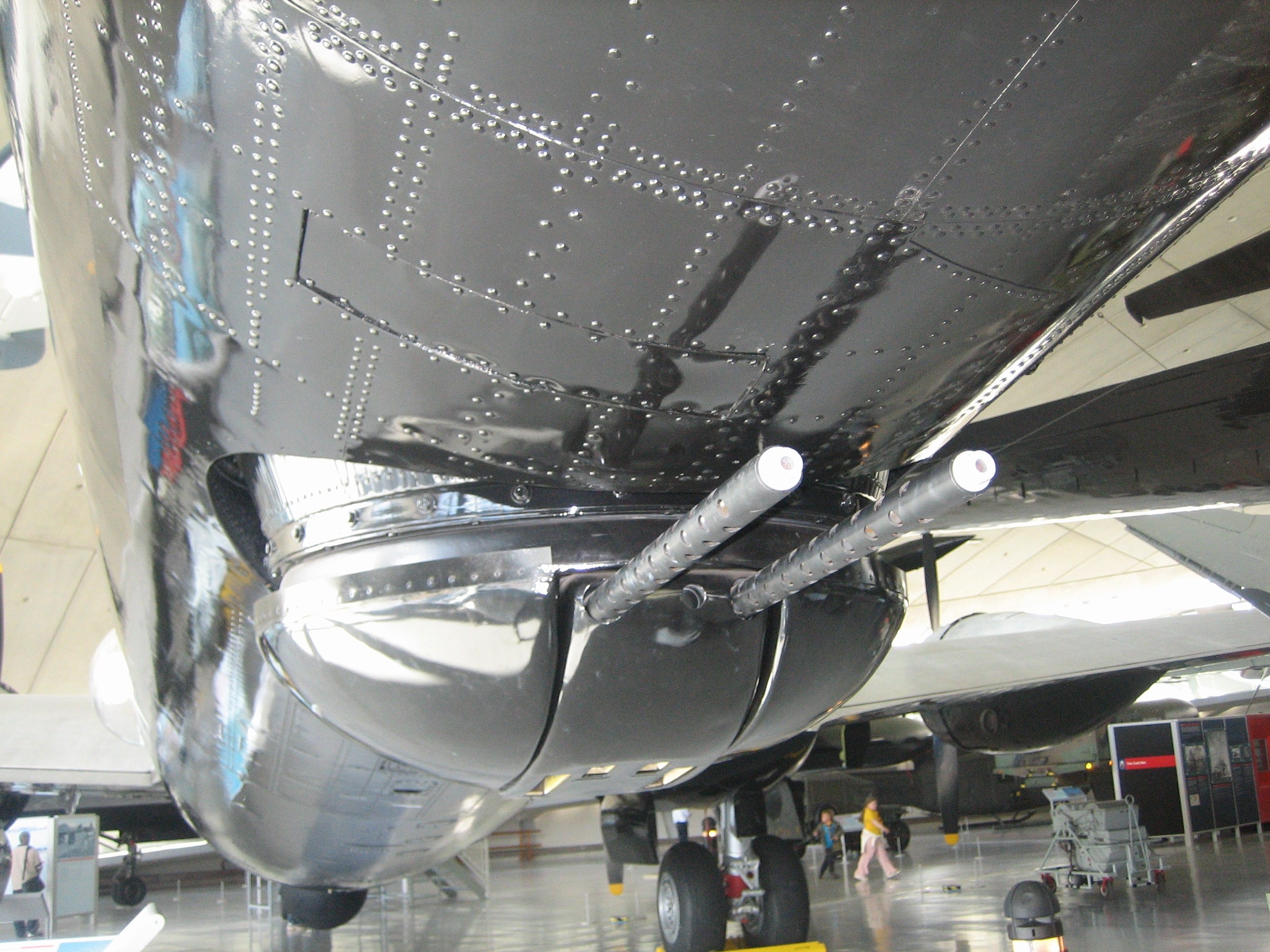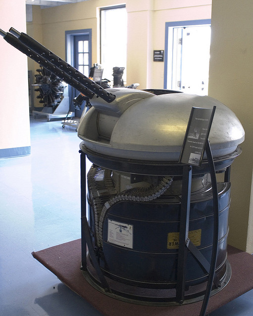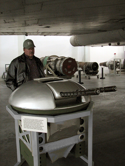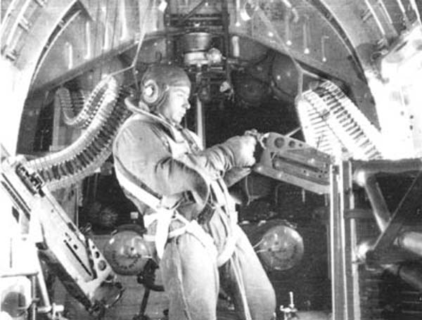 B-29轰炸机因为采用增压舱,所以M2机枪的炮塔为遥控韧皮操作,最初是双联机枪,后来改为四联机枪,操纵的枪手就坐在炮塔后方