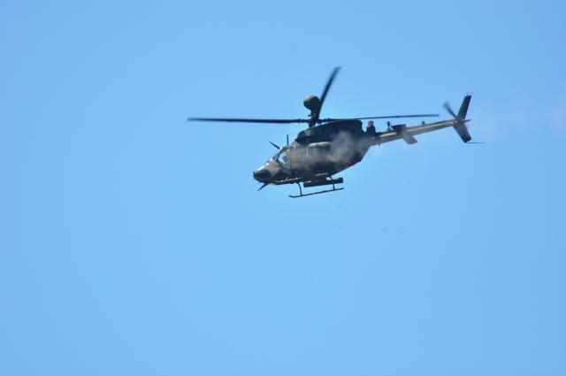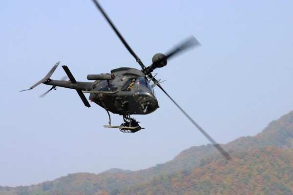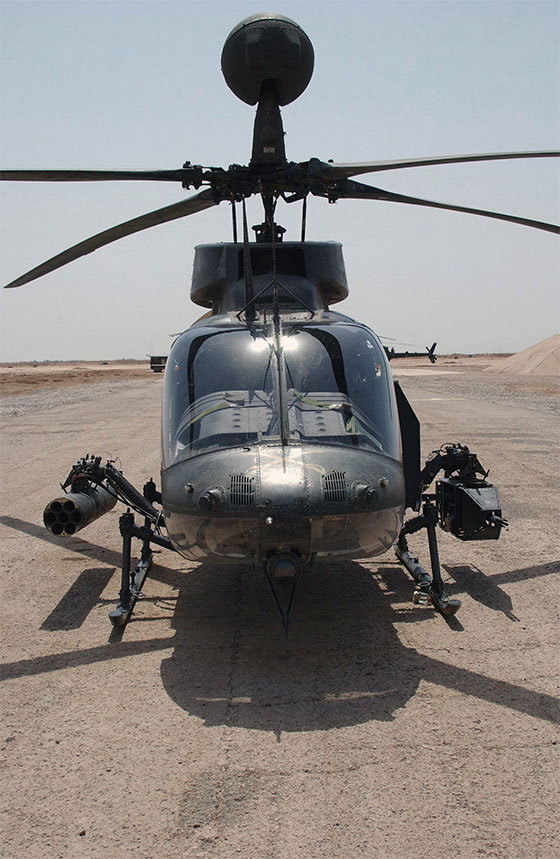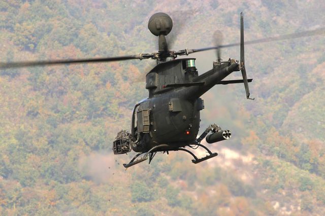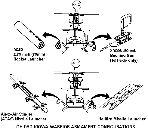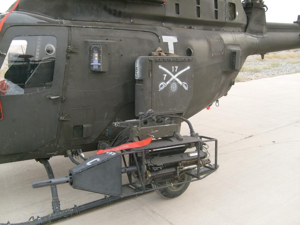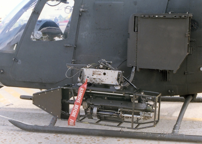 XM296通过机腹吊架吊挂在OH-58D的左侧