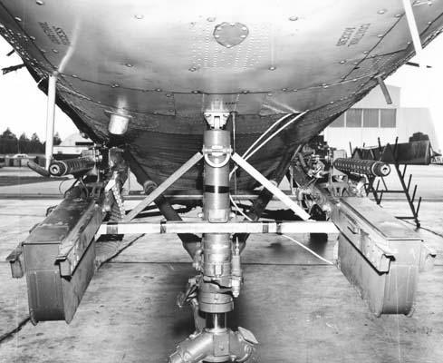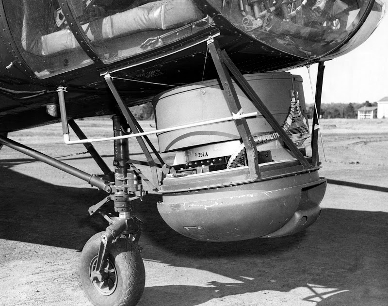 H-21C上试验的另一种武装方式,把B29轰炸机上的遥控AN/M2炮塔装到直升机的机首下方