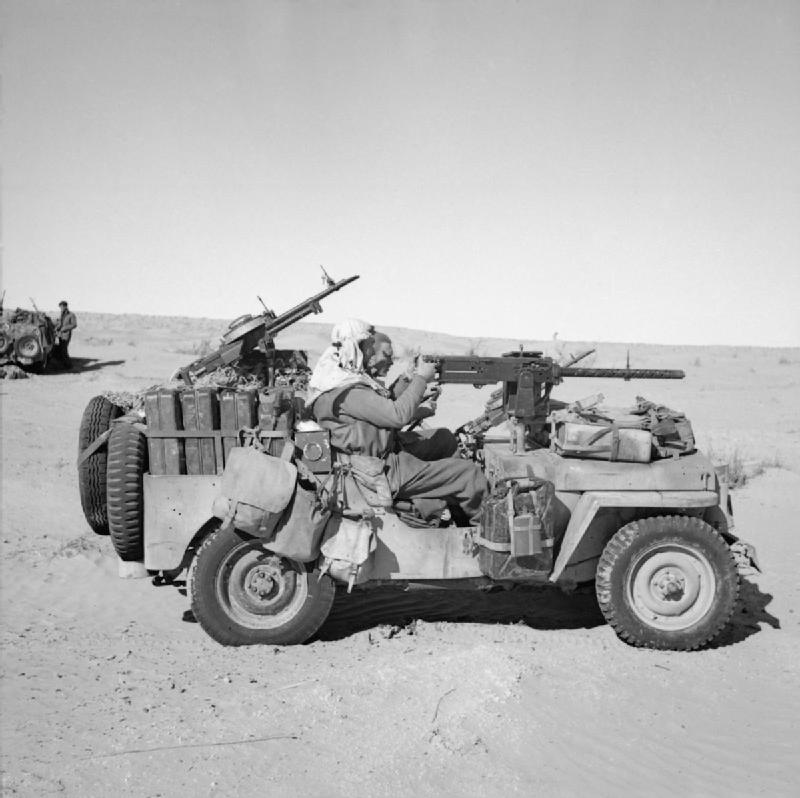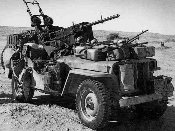 FAV的始祖——二战时在北非的SAS和沙漠渗透侦察大队(Long Range Desert Group)和使用的DIY攻击车,虽然大多数装备风冷型维克斯机枪,但也有一些是配备了M2机枪航空型