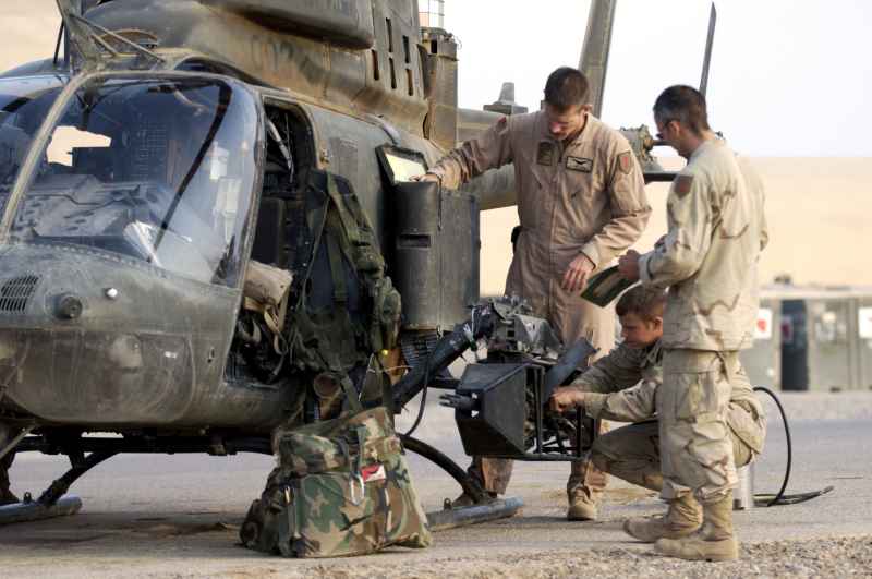 OH-58D升级成OH-58F时,用FN M3P替换安装M2的M296,这种新机枪也取消了原来庞大的枪架