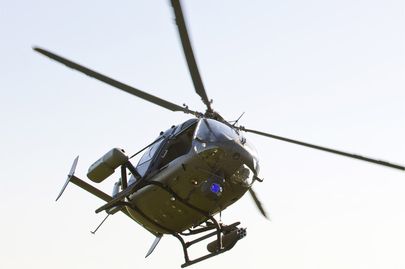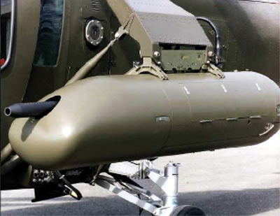 由EC145T2改进而成的AAS-72X+武装侦察直升机通常吊一个或一对HMP400机枪吊舱