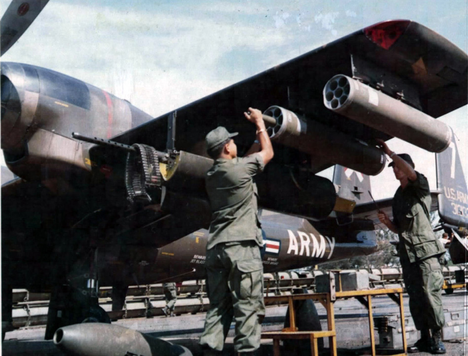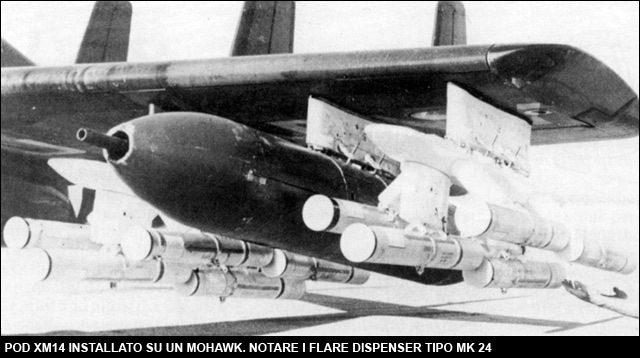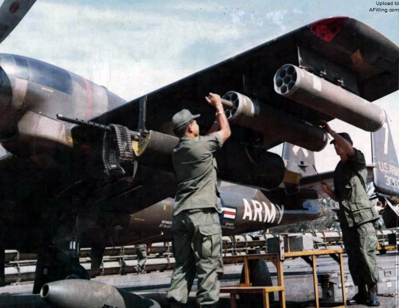 越战时期使用的OV-1D“莫霍克”战场监视飞机的翼下挂机可以挂载XM14机枪吊舱