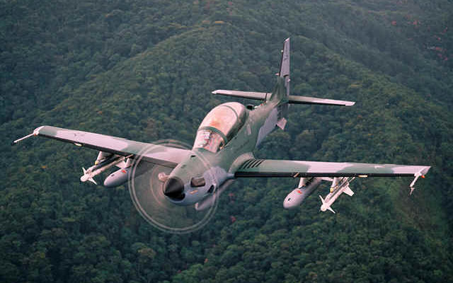 美国人用农业飞机“空中卡车”改装的低烈度战场中的近距战场支援飞机(也叫反暴乱飞机)AT-802U,此图中展示的型号吊挂了HMP250 RMP机枪/火箭吊舱