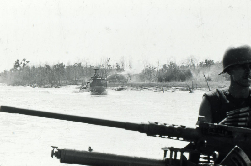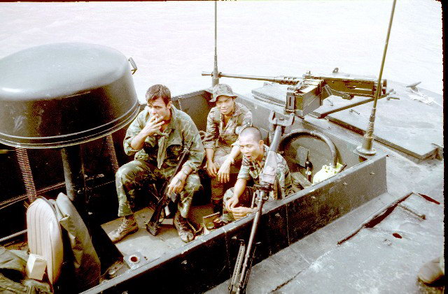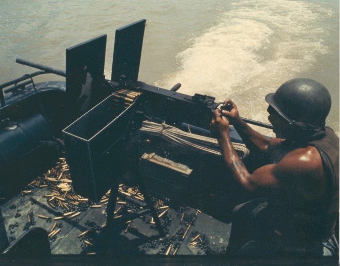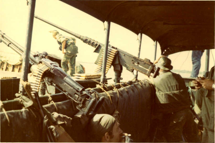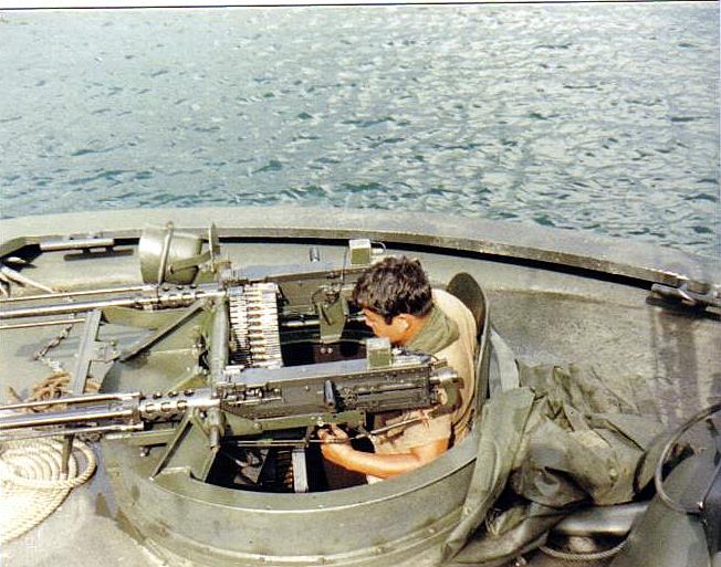 越战时使用的由登陆艇改装的HSSC(重型海豹支援艇——Heavy SEAL Support Craft)上两舷也有M2HB