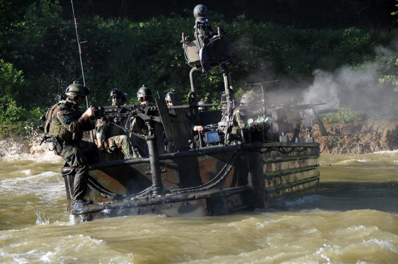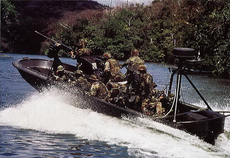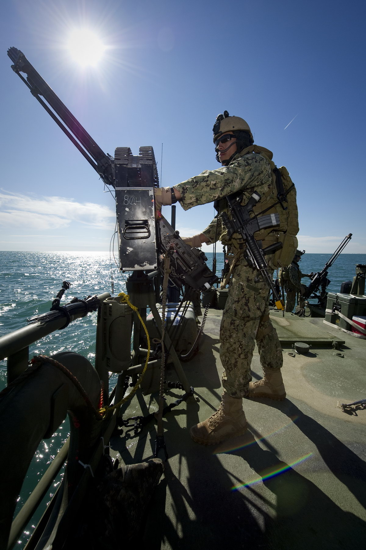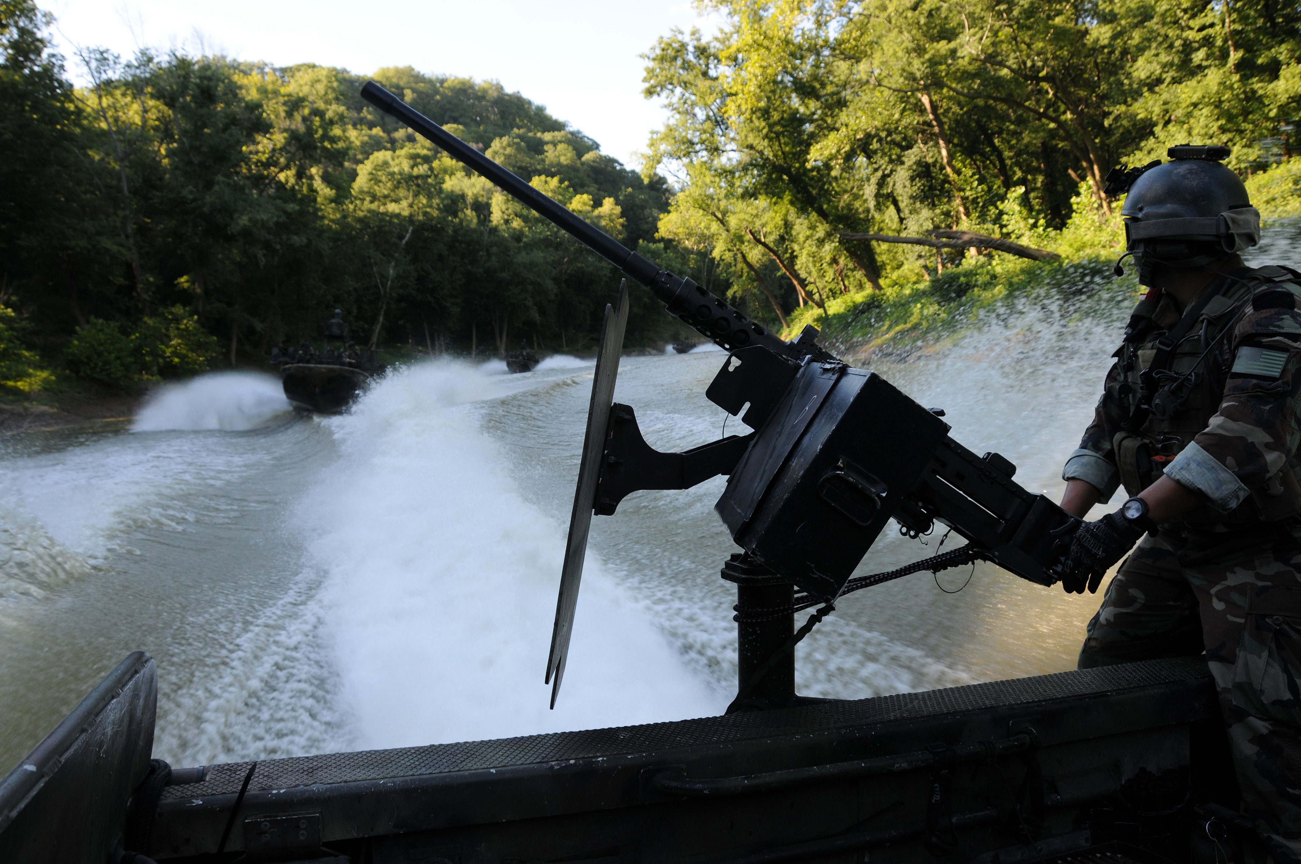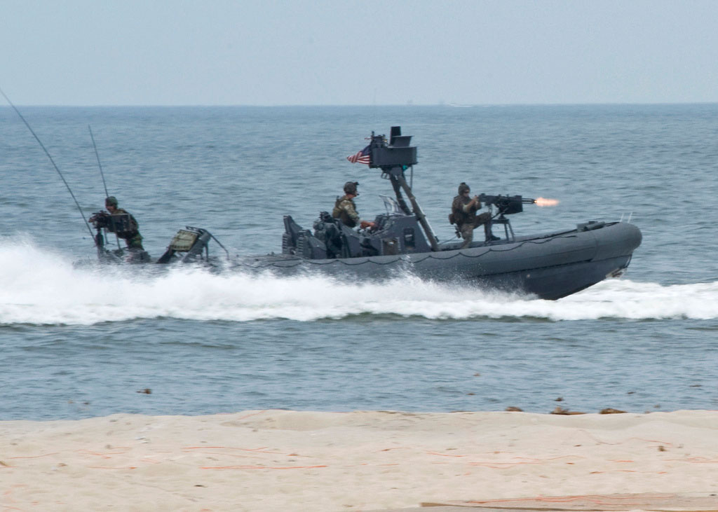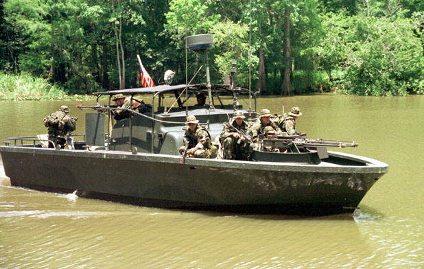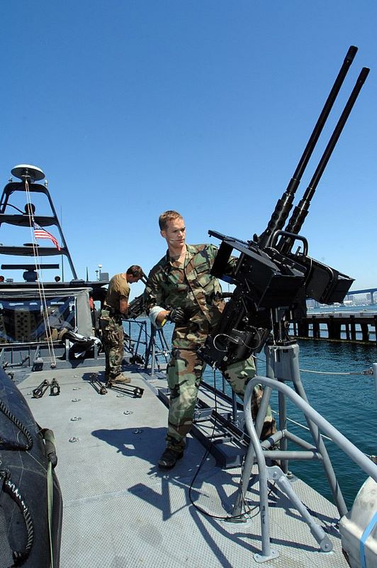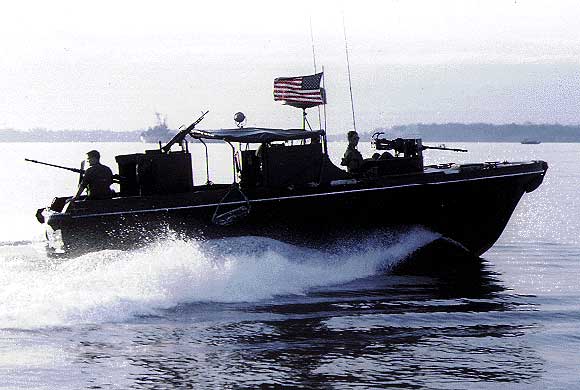 瑞典生产的CB90特种攻击艇被美国海军采购回来用作河道巡逻艇(RCB),并装上大量的M2HB增强火力