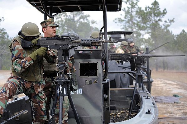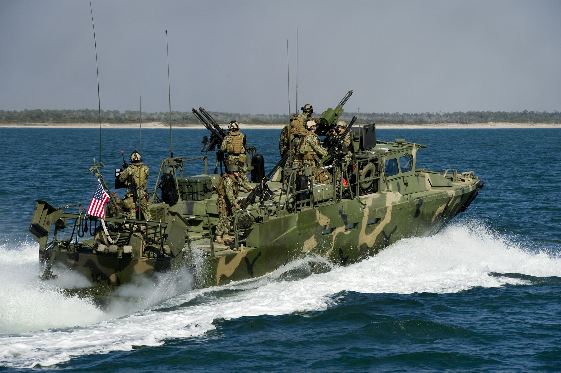 SWCC用于内河巡逻和运载海豹使用的PBL(轻型巡逻艇——Patrol Boat Light),艇艏安装一挺M2HB,现在已经被SOC-R取代