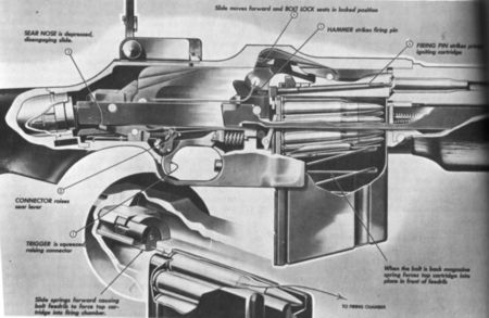 M1918A2的结构图,与M1918专利图比较,最明显的区别是枪托里新增加的缓冲器