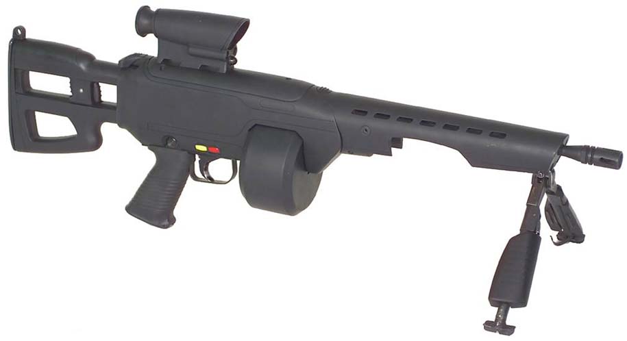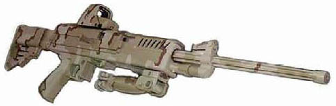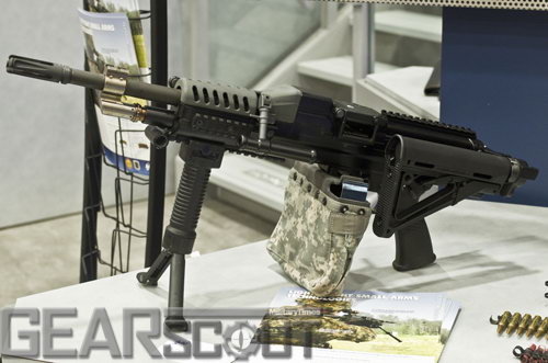 2012年出现的安装伸缩/折叠枪托和短枪管的伞兵型LSAT样枪