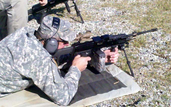 在2011年年底,约20名士兵参加了在本宁堡举行的为期两周的试射评估,评估中对LSAT和M249 SAW进行了比较,包括实弹射击、全副武装越野6公里或短途冲刺200米后再行射击。在第三个星期还让第75游骑兵团参加,进行城市战练习。参与过的人士兵都认为LSAT比M249的精度更好,一名游骑兵甚至说LSAT的表现优于特种部队当前使用的Mk46。2013年8月,在本宁堡再次对改进过的LSAT进行试射评估,3个步兵班和1个机枪班使用7挺LSAT共发射了9,700发弹,评价也是不错。至2015年5月止,已经在10挺原型枪上一共发射了共85,000发弹。