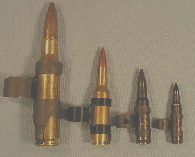 ![]() 从左到右:.50 BMG,.338 NM,7.62 NATO,5.56 NATO |