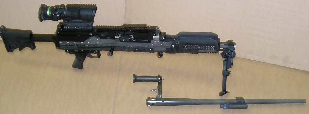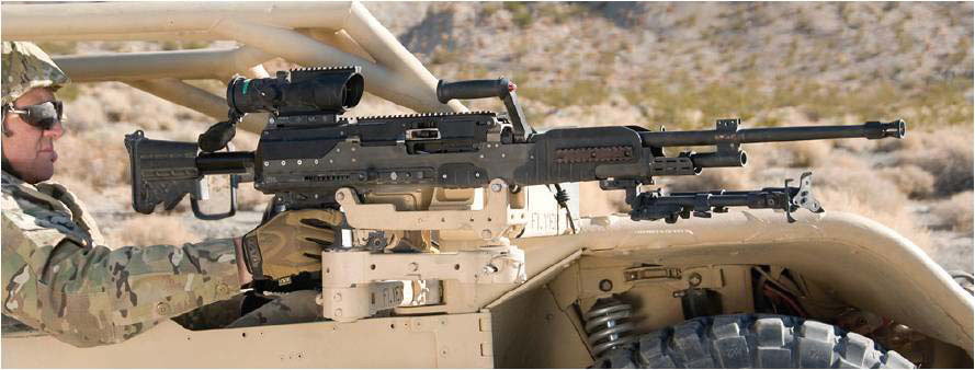 不过在通用动力的宣传上,LWMMG倒是相当美好的:一个M240B机枪小组的射手携带机枪和100发弹(37磅),副射手背M192三脚架、后备枪管和300发弹(37磅),弹药手带400发弹(27磅),共负荷101磅;一个LWMMG的机枪小组的射手携带机枪和100发弹(40磅),副射手背M192三脚架、后备枪管和200发弹(41磅),弹药手带300发弹(36磅),共负荷117磅;而一个M2HB机枪小组携带一挺机枪、M3三脚架、后备枪管和500发弹,全重约300磅,还需要一辆悍马车。