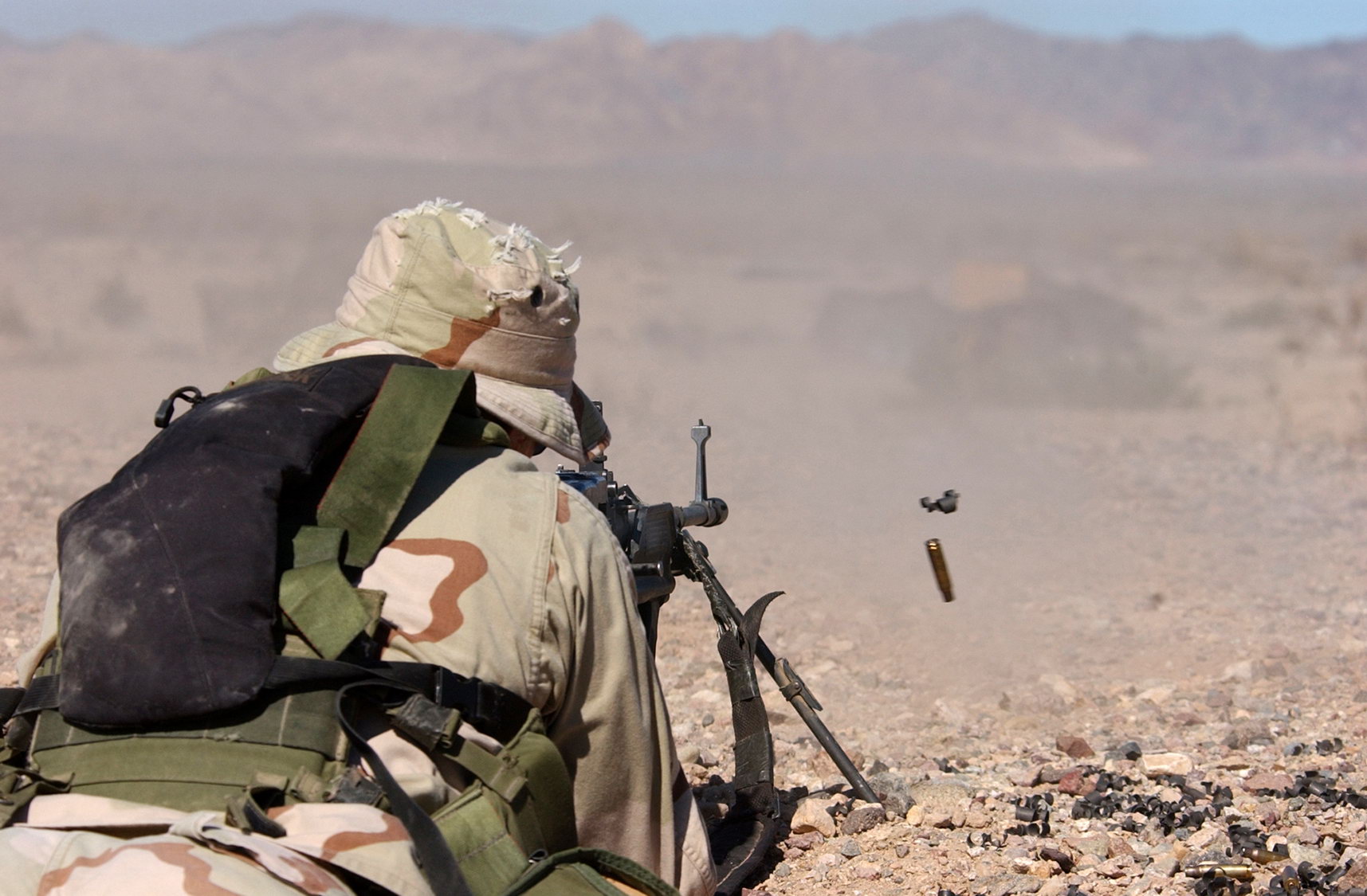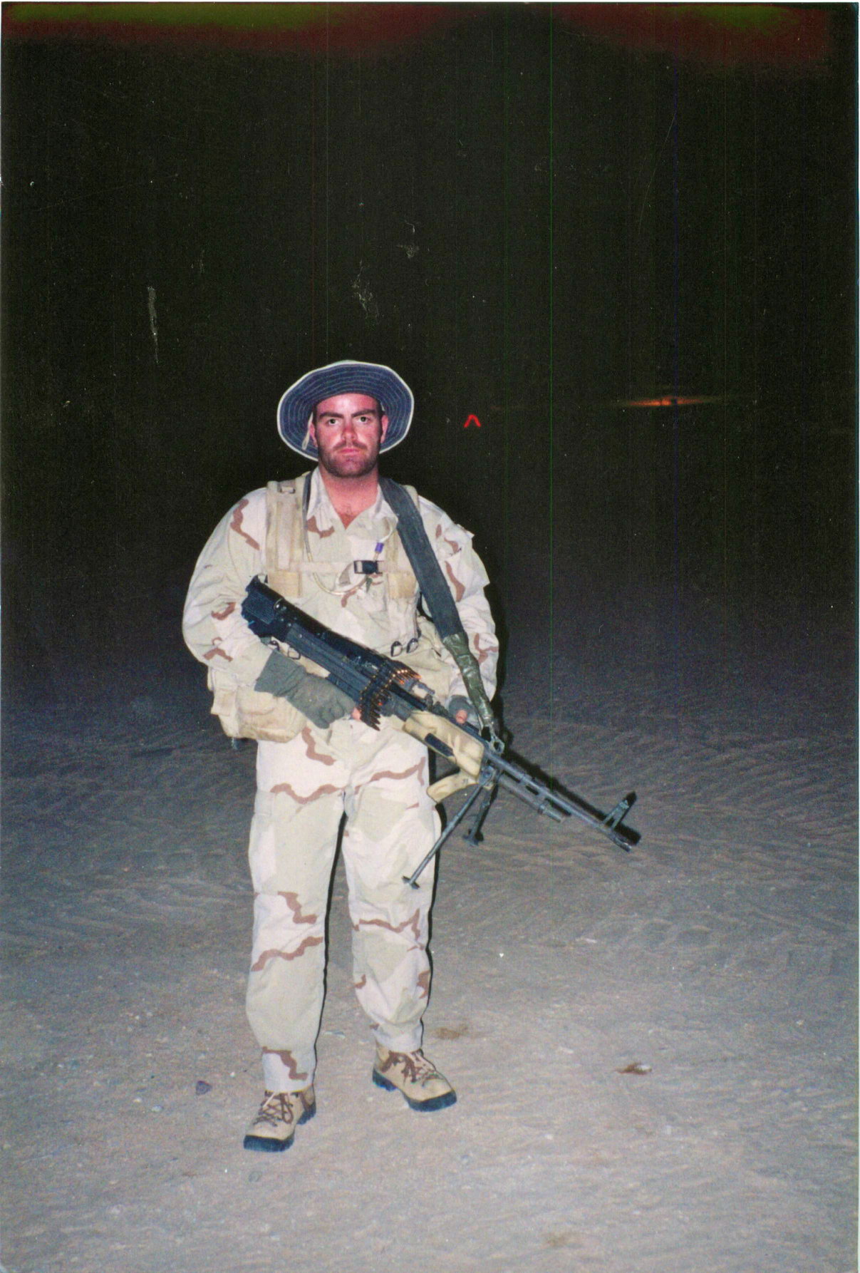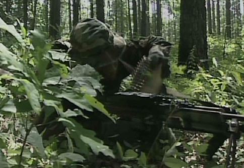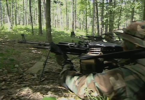 在DISCOVER纪录片中的海豹突击队员,为加快更换弹链的速度,弹链是装在一个预先撕有开口的纸盒内,再把这个纸盒放进左侧弹箱挂架挂着的帆布弹袋内
