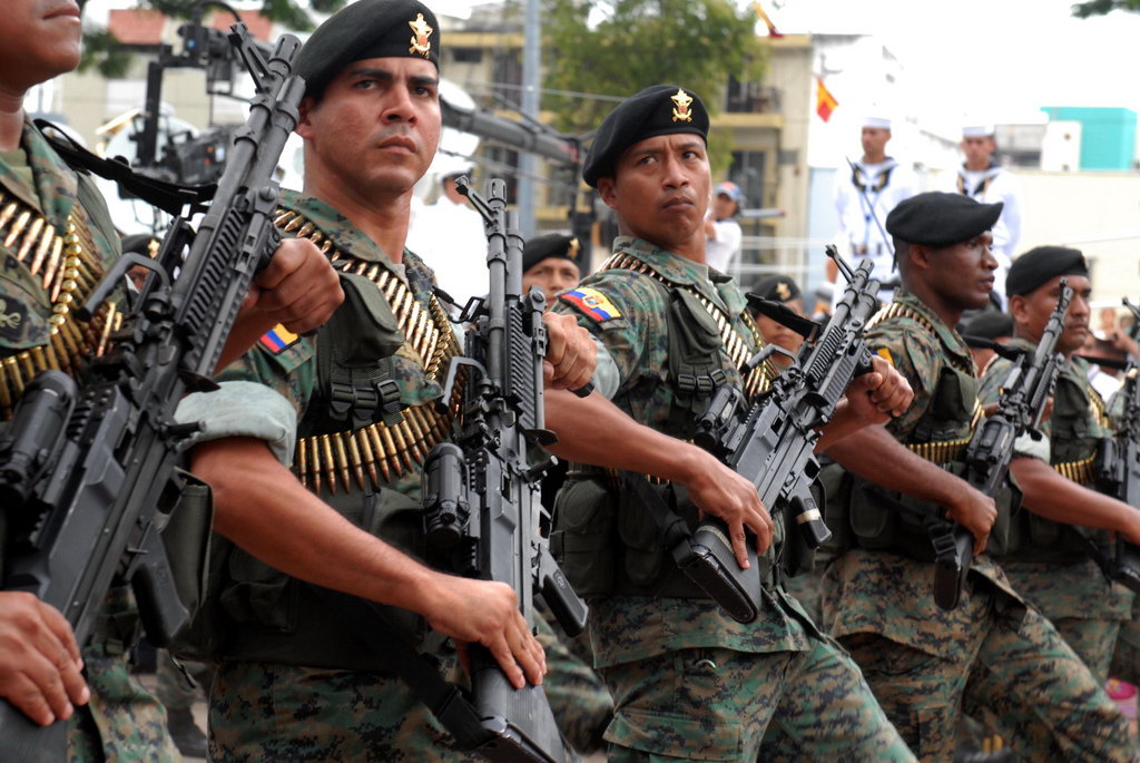 厄瓜多尔士兵在2011年阅兵式上扛着的M60E4,装上了导轨护木