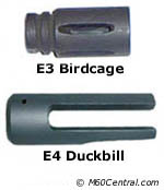 另外,萨科防务还为M60E4设计了一种被戏称为“鸭嘴”(duckbill)的分叉形消焰器,由于使用短枪管时的枪口焰比较大,这种新的消焰器可以控制火药燃气向左右两边排出,避免在夜间射击时向上的枪口焰会影响夜视装置的观察效果。这种消焰器主要用在短枪管上,但大多数的M60E4都是使用E3消焰器,据说是因为有实际经验表明“鸭嘴”消焰器不适合丛林中使用,射手携带机枪在丛林中前进时消焰器的分叉口有时会缠上细小的枝叶。