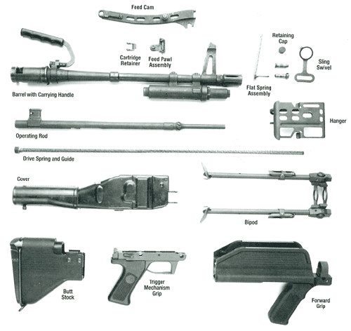枪管定位杆增加了一个橡胶隔热套,使射手在更换灼热枪管时不容易被烫伤。