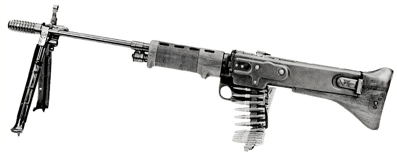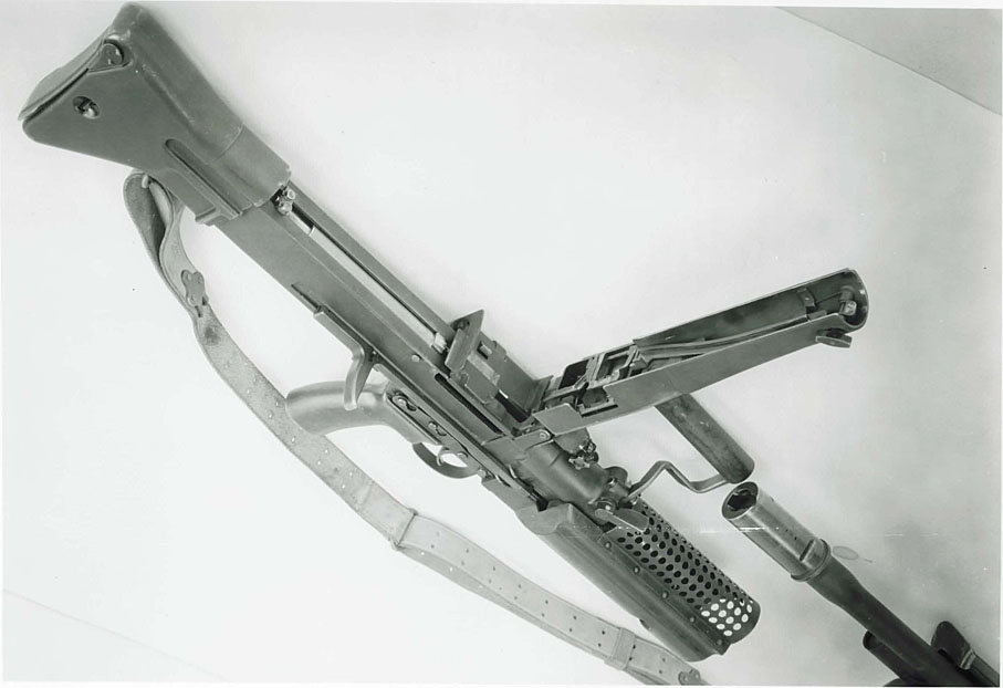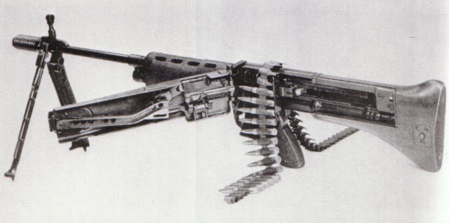 这是美国人试验的FG42弹链供弹式改型T44,从打开的受弹盖可以发现其内部与M60很相似