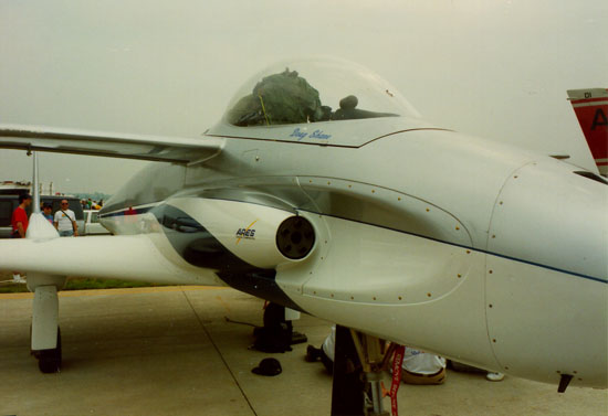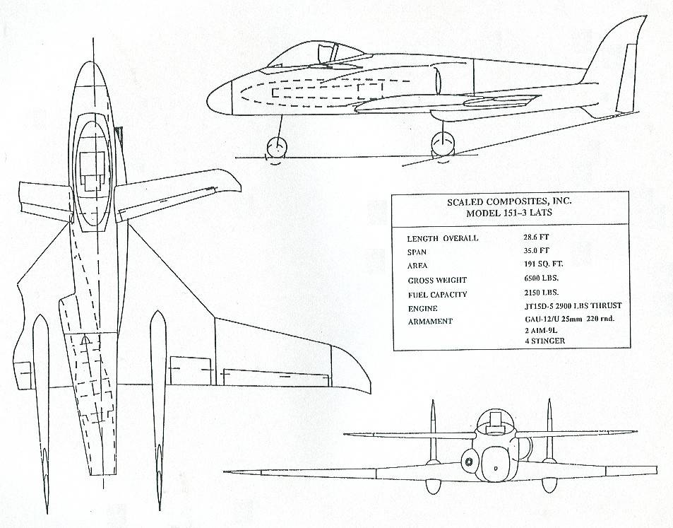 鲁坦151型战神(151 ARES)是1990年代初的一项超轻型攻击机计划,主要是考虑用于对付低烈度战场上的近距支援,或武装扫毒之类的特种作战。“战神”挂载的武器不多,主要武器是一门GAU-12/U机炮——“战神”的特点是非对称机身,进气道在左侧,而机炮安装在右侧,这样设计的目的是避免机炮射击时产生的废气被吸进发动机。