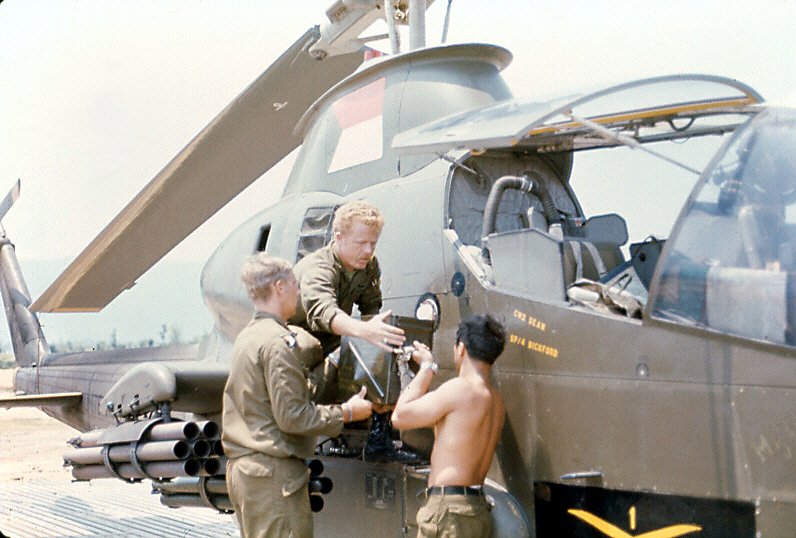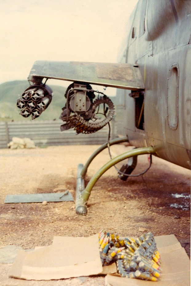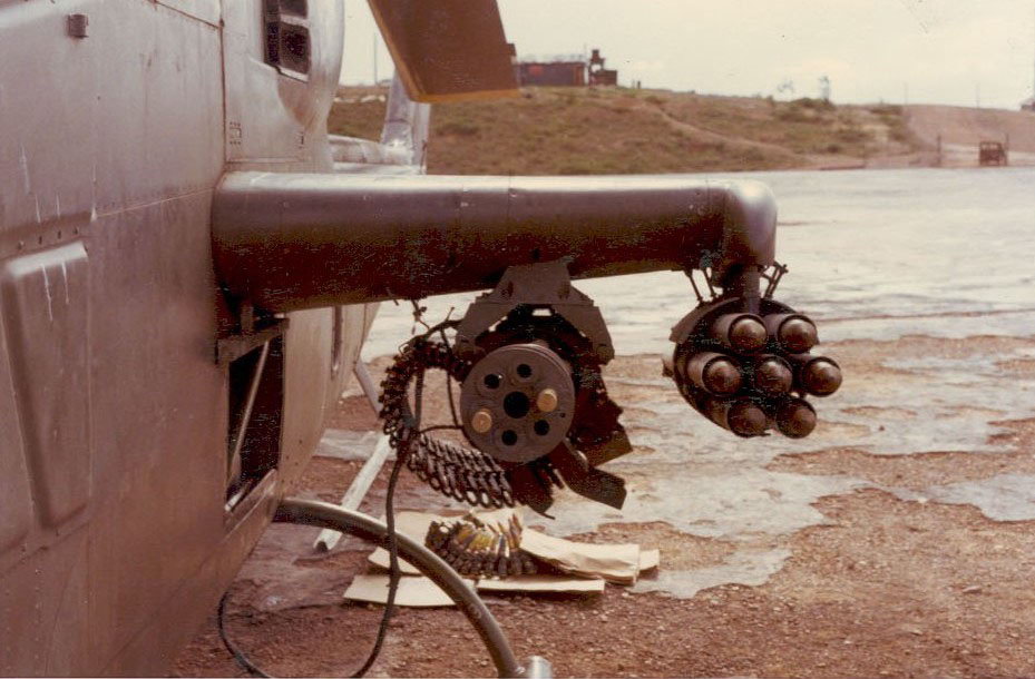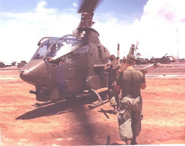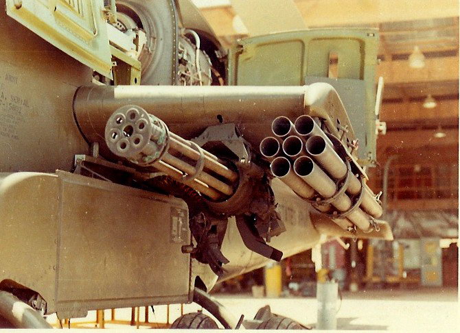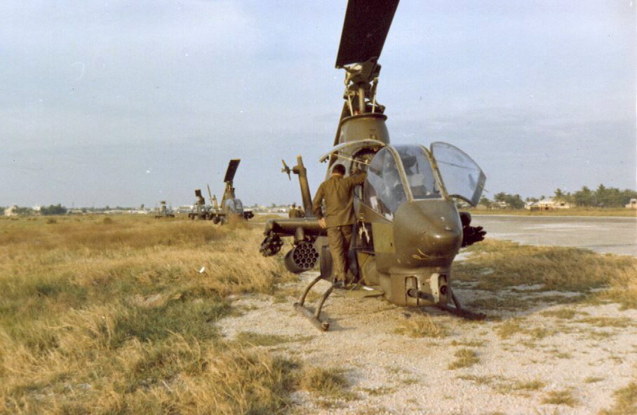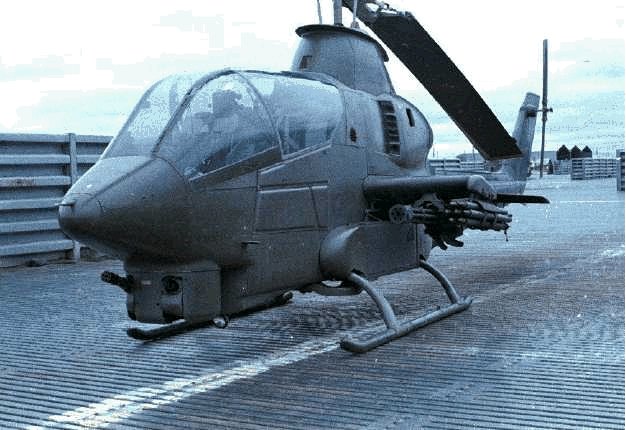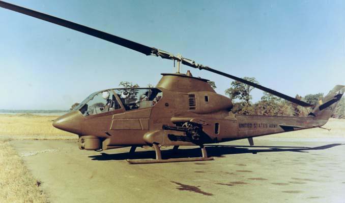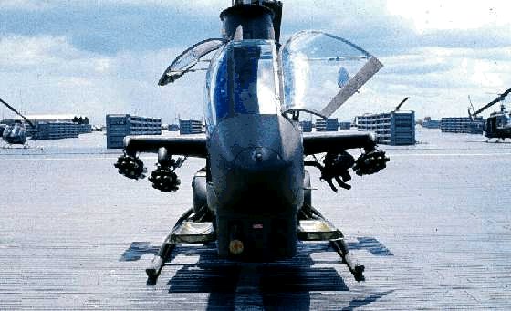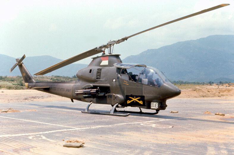 这几张在右侧拍摄的AH-1G照片虽然看不到左短翼下的M195机炮,但起落架上方的凸起物便是为XM35武器系统供弹的弹箱