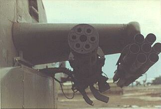 这一架眼镜蛇在右翼内侧的挂架上挂上了19联装火箭巢,虽然能稍为平衡一下重心,但动力会比较勉强