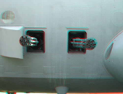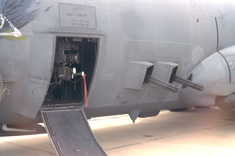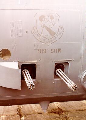 ![]() 装在AC-119K左侧的两门M61机炮和4挺M134机枪 |